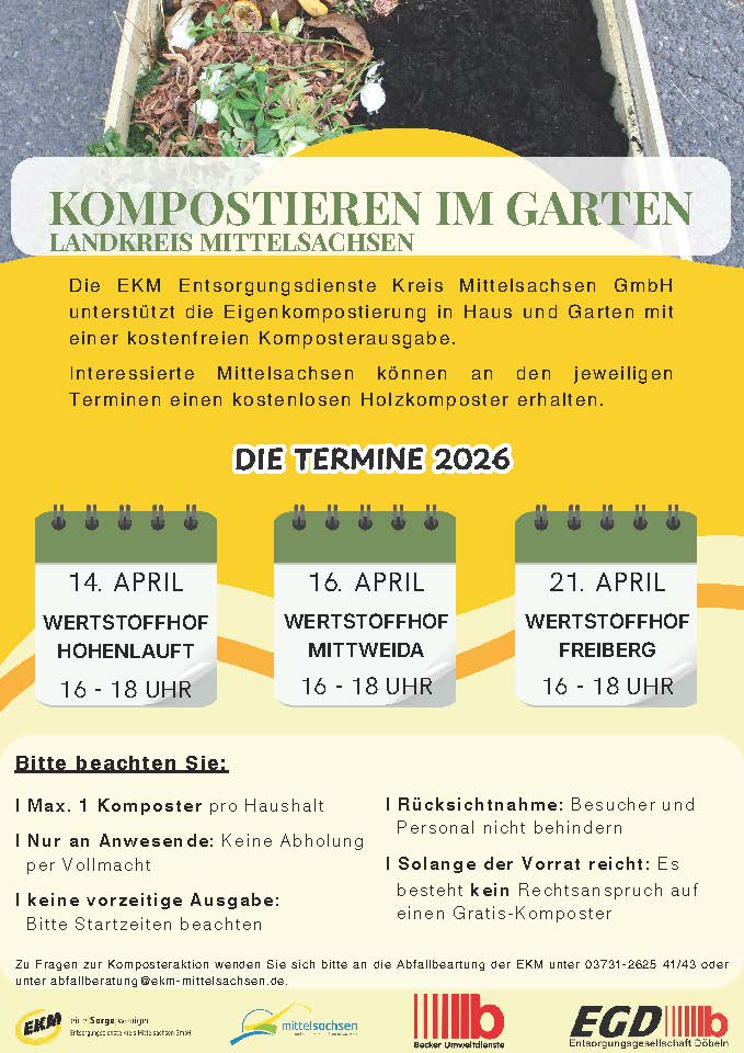 finden wieder unsere jährlichen Komposteraktionen statt. Weitere Informationen erhalten Sie dabei unter https://www.ekm-mittelsachsen.de