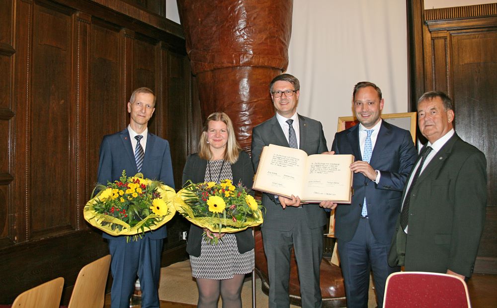 Daran anschließend trugen sich die Bogenschützin Anne Eichhorn und der geschichtsbegeisterte Schulleiter des Lessing-Gymnasiums Michael Höhme in Anerkennung und Würdigung ihres Engagements zum Wohle der Stadt Döbeln in das Goldene Buch ein.
