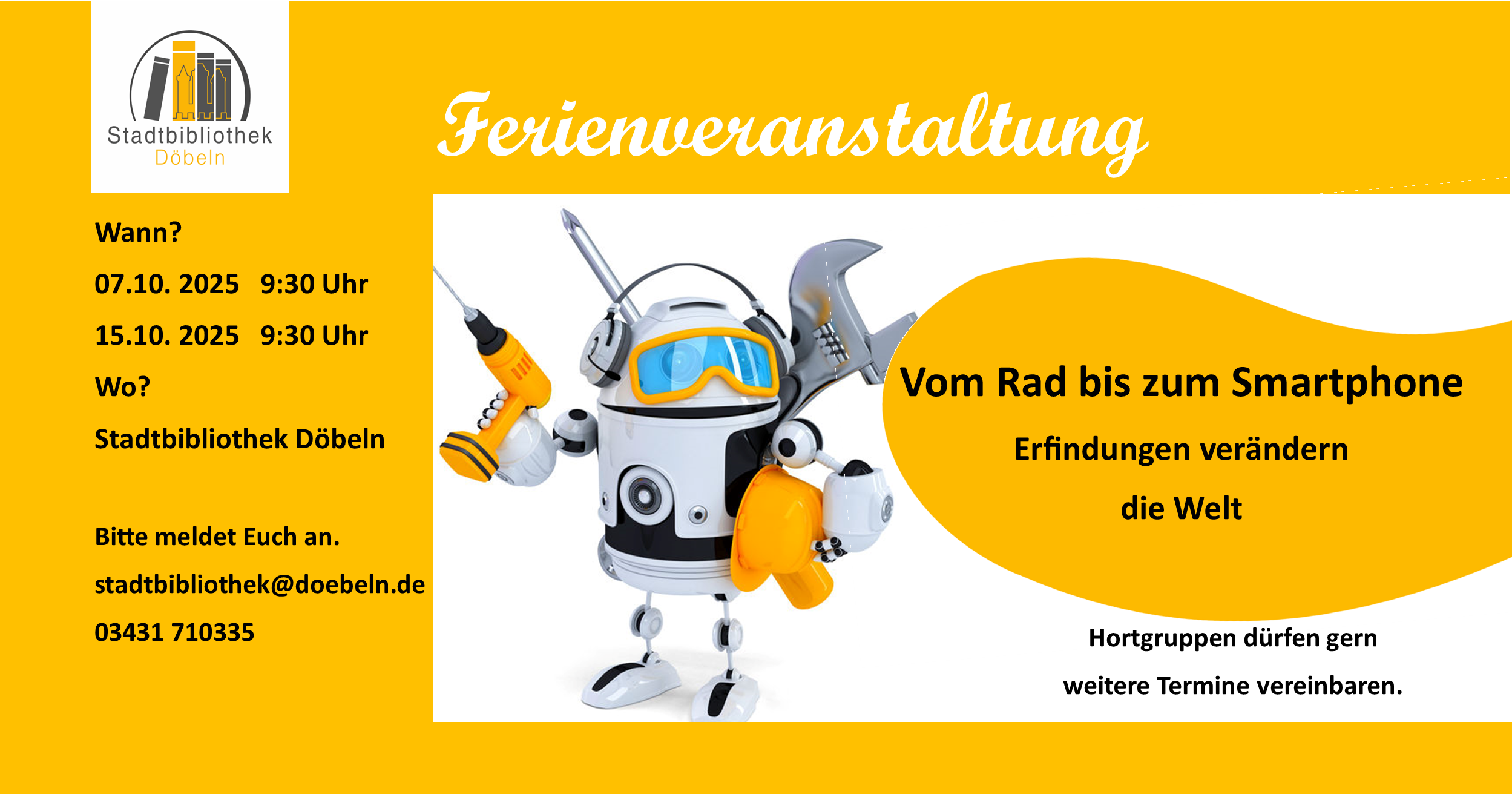Herbstferienangebot in der Stadtbibliothek Döbeln: "Vom Rad bis zum Smartphone - Erfindungen verändern die Welt"