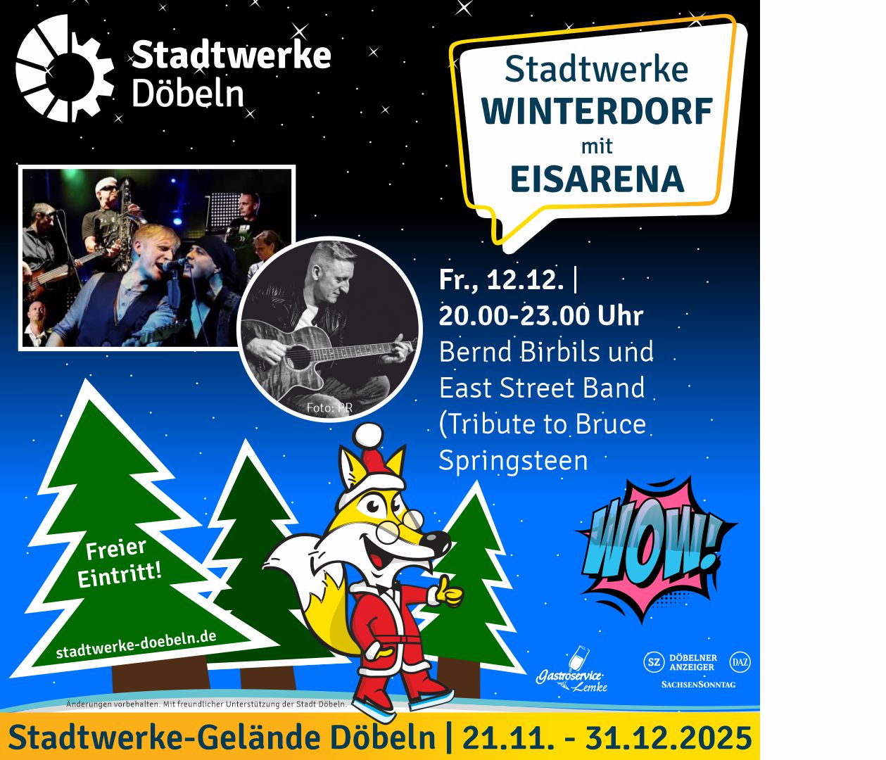 Stadtwerke Winterdorf mit Eisarena: Live-Musik mit Bernd Birbils und der East Street Band (Tribute to Bruce Springsteen)