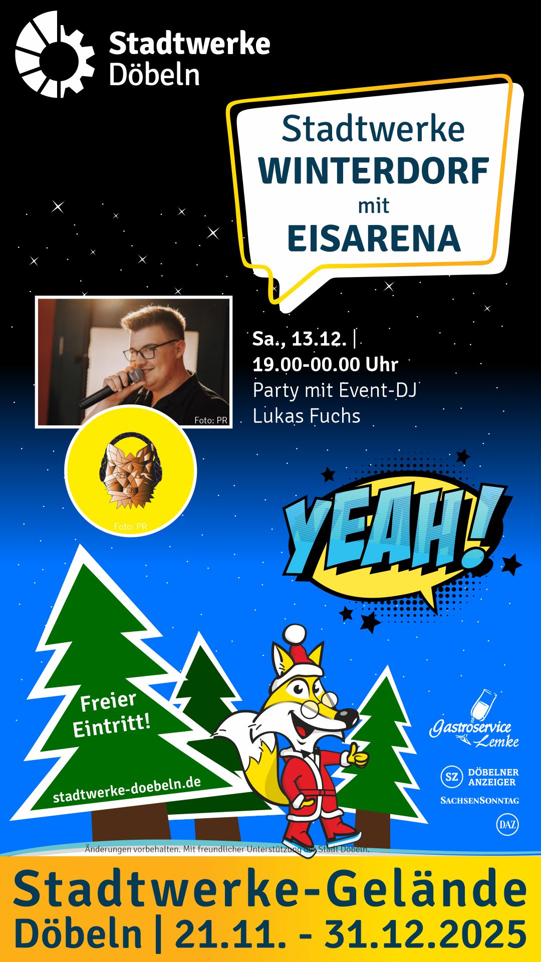 Stadtwerke Winterdorf mit Eisarena: Party mit DJ Lukas Fuchs