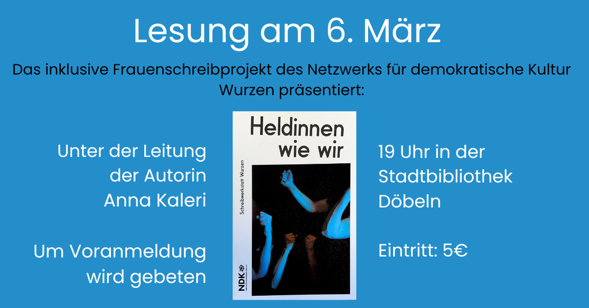 Das inklusive Frauenschreibprojekt „Heldinnen wie wir“ des Netzwerks für demokratische Kultur Wurzen brachte unter Leitung der Autorin Anna Kaleri Frauen verschiedenster Lebensrealitäten ins Sprechen und Schreiben – von Schülerinnen über Feministinnnen, Frauen mit Fluchterfahrung bis hin zu Seniorinnen und Bewohnerinnen betreuten Wohnens.