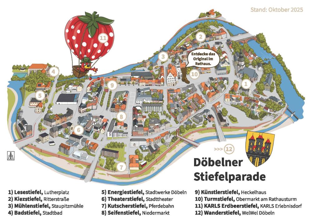 Der historische Döbelner Riesenstiefel, der im Rathaus seinen Platz hat, wird 2025 100 Jahre alt. Aus diesem Anlass hat ein Team der Stadtverwaltung das Projekt „STIEFELPARADE für einen PARADESTIEFEL – Ein Riese wird 100“ entwickelt. Für diese Parade entstehen 2025 zwölf kleinere Brüder des Wahrzeichens der Stadt. Bis Ende 2025 sollen die 2,50 Meter hohen Nachbildungen des Riesenstiefels aus Glasfaserverbundstoff von hiesigen Künstlern, Bürgern sowie ansässigen Unternehmen gestaltet werden. Zehn der Stiefel werden im Laufe des Jahres in der Innenstadt aufgestellt. So wird es einen Kutscherstiefel am Pferdebahnmuseum geben, an die Stadtbibliothek kommt ein Lesestiefel und an das Theater ein Theaterstiefel. Es wird einen Mühlenstiefel, einen Künstlerstiefel, einen Energiestiefel etc. geben.