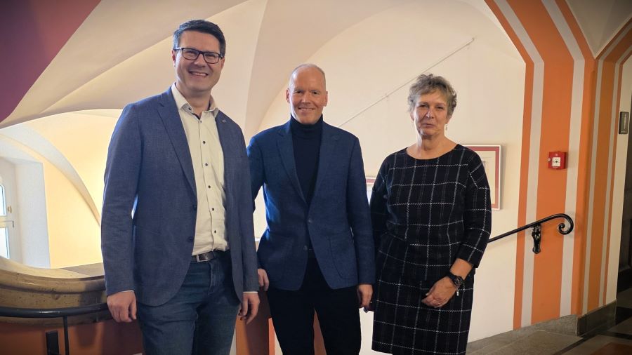 Oberbürgermeister Sven Liebhauser (links) und Carola Pönitz, langjährige Geschäftsführerin der Seniorenhaus „Am Südhang“ gGmbH in Technitz, stellten gemeinsam den neuen Geschäftsführer des Hauses, Tobias Schnecke, vor. (Foto: Maria Fricke)