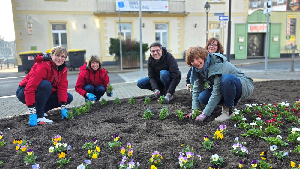 Mit der Pflanzaktion ist zudem die Frühjahrbepflanzung in der Stadt abgeschlossen worden. Die Stadtgärtner haben in den vergangenen Tagen 4500 Stiefmütterchen, 500 Vergissmeinnicht sowie 500 Tausendschönchen in die Erde gesetzt. „In diesem Jahr waren es 500 Stiefmütterchen mehr, weil die Blumenuhr im Bürgergarten dazugekommen ist“, sagte Stadtgärtner René Kordos. Bepflanzt worden sind zudem das Beet vor der St. Nicolaikirche sowie der Kreisel an der Oberbrücke.