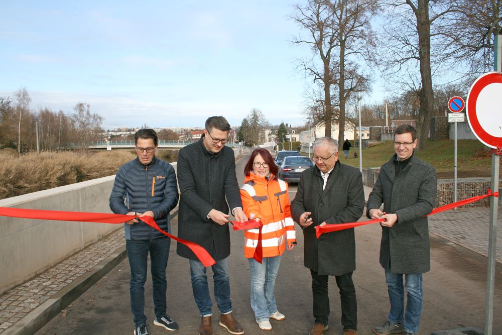 Oberbürgermeister Sven Liebhauser wies darauf hin: „Präzises Arbeiten war hier notwendig und wurde auch durch alle Beteiligten geleistet. Für alle, die diese Straße nutzen, waren die letzten zweieinhalb Jahre mit Einschränkungen in unterschiedlicher Form verbunden. Das ist nun Geschichte. Aber, was bleibt? - Wir haben wieder ein deutlich größeres Stück Hochwassersicherheit für unsere Stadt dazu bekommen. Sämtliche Versorgungsleitungen in einem wichtigen Abschnitt unserer Stadt sind erneuert und leistungsfähig für einen langen Zeitraum. Ein stark frequentierter Straßenabschnitt mit engen Kreuzungsarmen ist so ausgebaut, dass er nun deutlich mehr Sicherheit bietet. Ich glaube wir können sagen: Das alles hat sich gelohnt. Mein herzlicher Dank an alle Beteiligten.“